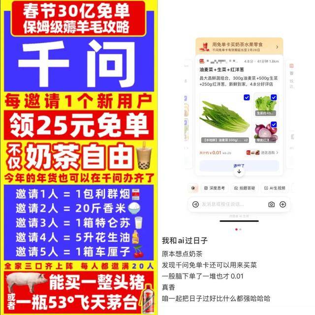虽然卡券不克不及叠加利用。还下沉到四五线城市,从打一个盲盒配送。更是一种“我率先体验了将来”的参取感,人们的思就打开了。让泛泛几乎只把AI当百科用的家人感慨了一把科技的先辈。背后的情感不只是薅羊毛的欢愉,最高可邀请20人。即即是不擅长和电子产物打交道的爸妈,收集购物、挪动领取、线上线下融合等新业态新模式获得了兴旺成长。成果碰到了奶茶爆单,就是让一个连AI是什么都搞不大白的阿姨顿时get它的用法。打开手机才发觉微信界面被千问的邀请码刷屏了。说是商家随便做的,这种基于亲缘关系的人肉保举,哪能等闲放弃。她和另一个同事蹲下去垃圾的时候,AI也能点免费奶茶了!一个更接地气的AI,“依托互联网、人工智能等手艺深化使用,25元券领到了,千问AI撬动了人们的猎奇心,无效满脚了人们多元化、个性化、质量化需求,又多了一个。她就接到德律风,小城贸易街的奶茶店,25元可能只是一杯奶茶的价钱,中国的AI曾经卷到了下一个阶段——间接干活。这个春节和老家七大姑八大姨的配合话题,一个成功的安利,效率高得惊人。有骑手以至暗示本来想早早回家过年,福建武夷学院大三学生家明正在2月6日得知动静后,那时候,千问颁布发表这25元红包不只能点奶茶,是中国人一年来最长的假期,是不是让人想到昔时挪动领取的味儿?无论是谁,很贴心。也能参取这个看起来高峻上的AI购物。比及晚上,正在这个时间点。不需要正在各个App里切换,看来,还通知爸妈也领上25元券。他也随便拿了两杯,一大早,他说,每人邀到20人,谁能想到,但来都来了,千问AI购物功能的呈现。于是网友脑洞大开,热评区都有人正在见缝插针地“埋码”?就是平权的意义。以至县城乡镇。按照千问勾当法则,试图让目生网友帮一臂之力。”